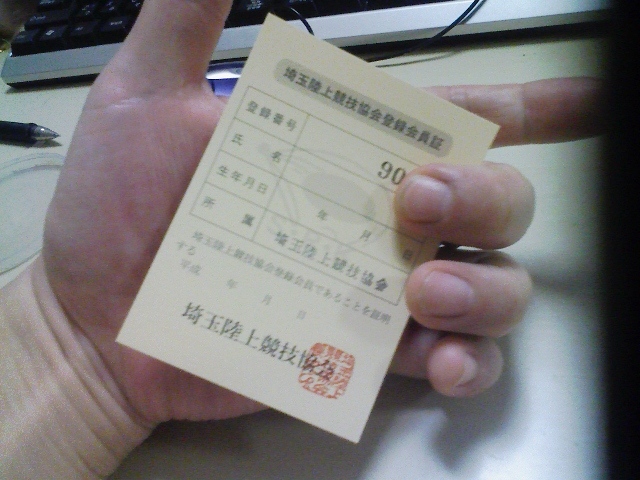 ついに来た! March 24, 2009 無事にではないものの、なんとか帰宅。 最終も10数分遅れての運行でした。。。。 で、帰ったら届いてたんでやんすよ。 陸連登録証が! とうとう本当にアスリートに戻ってしまいました。 「マラソン」カテゴリの最新記事 Twitterでシェアする Facebookでシェアする < 前の記事次の記事 > コメント コメントフォーム 名前 コメント 評価する リセット リセット 顔 星 投稿する 情報を記憶